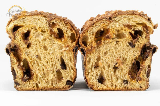 Nasce da un impasto artigianale preparato con lievito madre vivo, olio extravergine d’oliva pugliese al posto del burro e ingredienti selezionati come fichi pastorizzati aromatizzati alla cannella e cioccolato fondente.