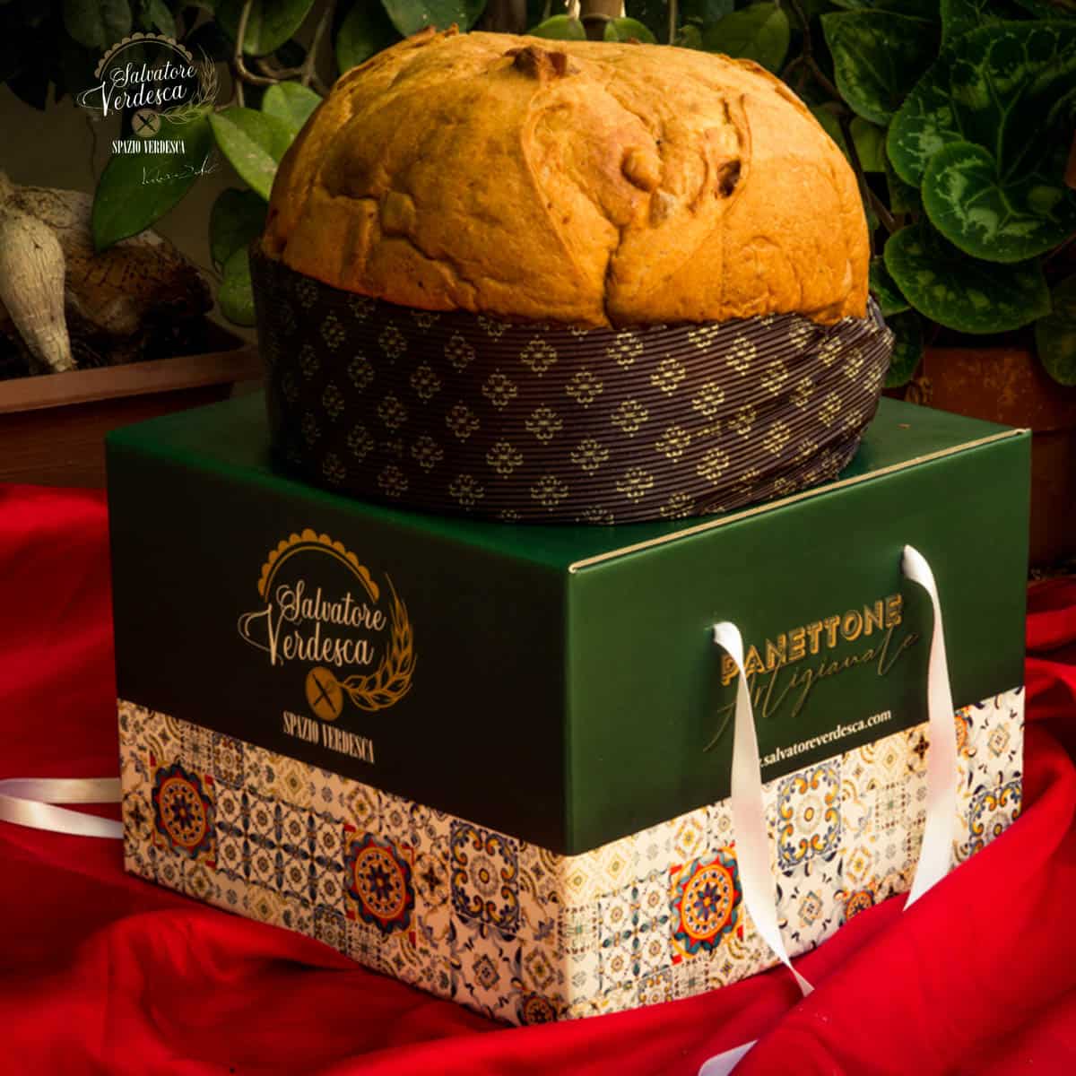 Il panettone di Salvatore Verdesca si compone di tanti dettagli tutti concepiti per farne un regalo elegante e di valore. Le maioliche pugliesi rievocate nella confezione e l’elegante colore verdone della confezione contengono un’artigianalità senza compromessi: i profumi intensi, la sofficità umida e l’alveolatura ampia dell’impasto, il sapore dei canditi naturali.